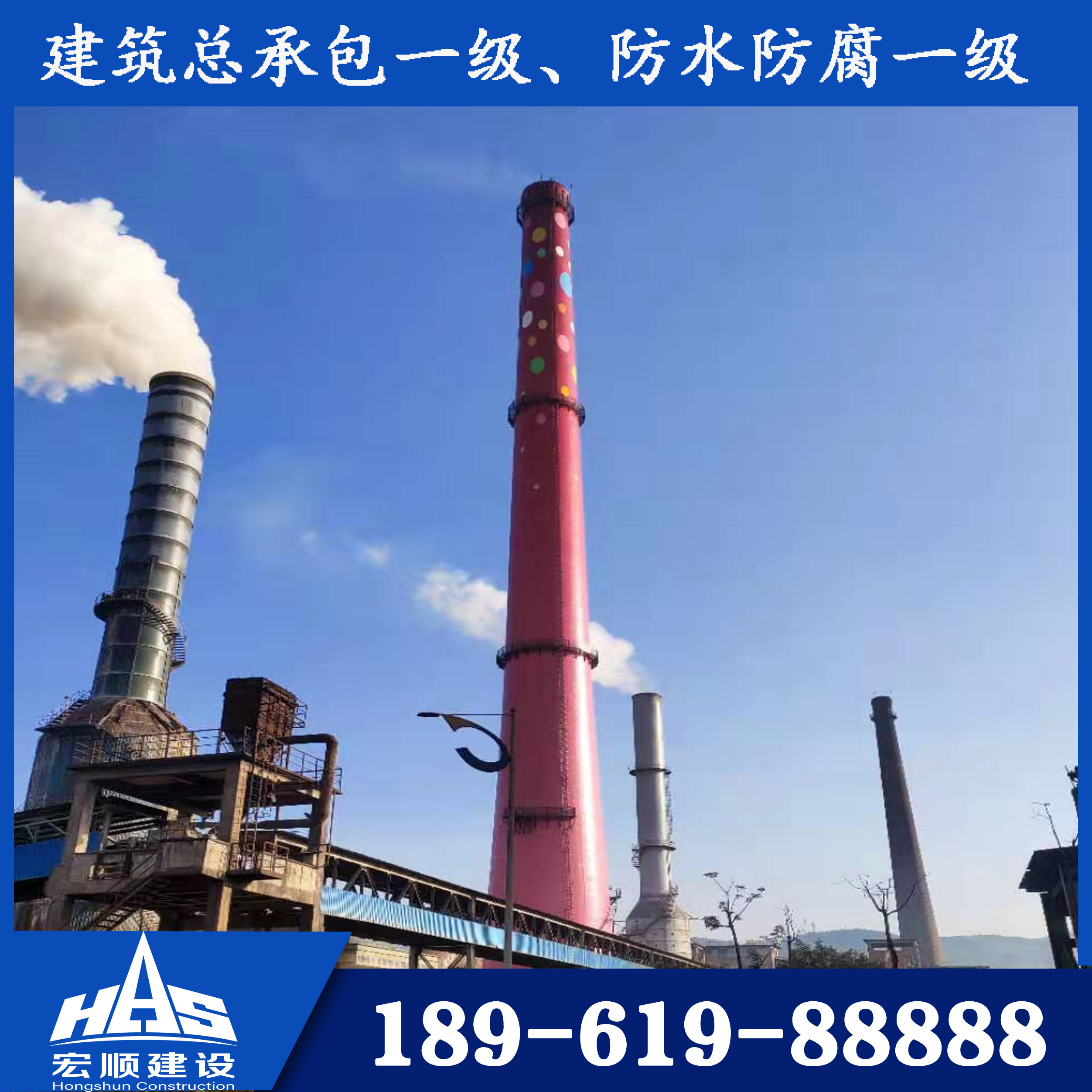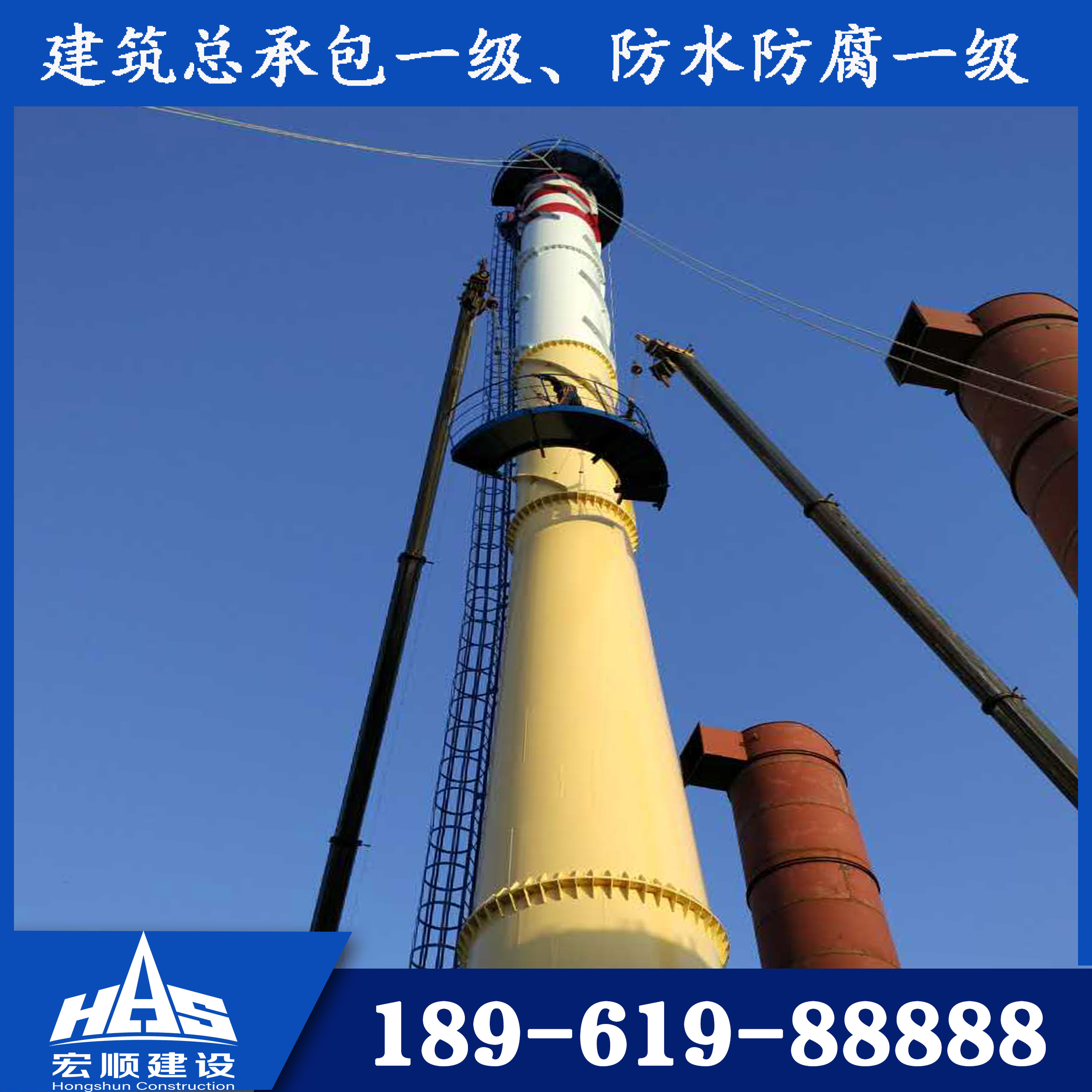 您好,歡迎您訪問宏順建設工程公司官方網站!我公司專業承接,煙囪新建,磚煙囪新建,煙囪改造,煙囪內壁防腐,煙囪脫硫防腐,煙囪拆除加高等工程!咨詢電話:18961988888。
